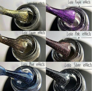 LUXIO EFFECTS - TOP GLOSS Ce produit agit comme une couche de finition, en plus de donner des reflets irrésistibles avec ses micros-paillettes. Contrairement au reste de la ligne Luxio, nous recommandons de catalyser ce produit dans une lampe puissante tel que la Hybrid Pro ou la LED de Akzentz pour 1 minute, au lieu de 30 secondes pour un fini plus lustré.
