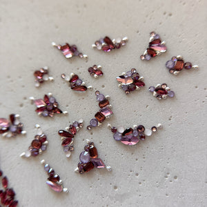 Utilisés seuls, ces strass transmettent une impression de légèreté et d’élégance subtile. En duo avec des teintes plus profondes comme le prune, le noir ou le bordeaux, ils révèlent une allure mystérieuse et sophistiquée.