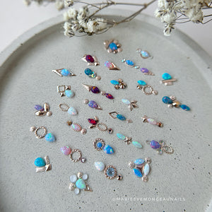 Parfaites pour structurer une composition, illuminer un design ou ajouter une pièce maîtresse délicate, ces opales s’intègrent harmonieusement dans tous les styles de nail art, du plus subtil au plus élaboré.