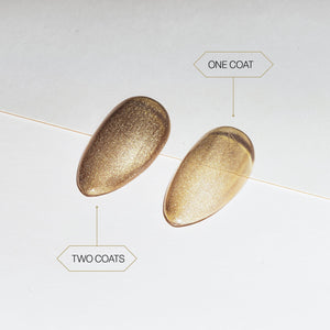 Des reflets dorés, roses et violets scintillants avec des particules métalliques aimantées. Effet Cat Eye magnétique et étincelant garanti. Aimant inclus.