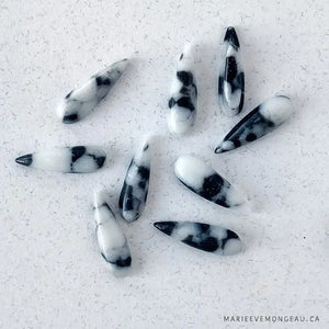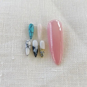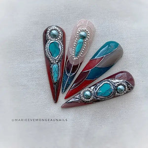 Pour appliquer de plus gros bijoux, qui n’épousent pas la forme de l’ongle, combler les parties concaves avec de la résine médium ou épaisse.