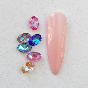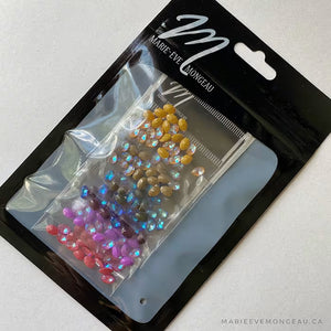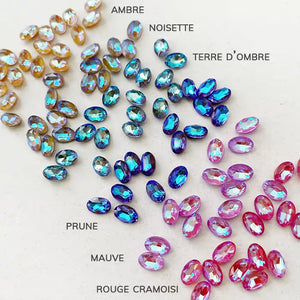 Collection de diamants de cristal avec de magnifiques reflets orangés et turquoises. La pointe est légère ce qui permet de ne pas avoir un trop gros volume en hauteur. Jouez à assembler plusieurs diamants en pointe pour crée un seul gros bijou, ou tout simplement à l’entourer de diamants classiques.