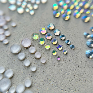Available in five different sizes (ss4-ss6-ss8-ss10-ss16), these diamonds are offered in generous quantities of ½ tsp, offering endless versatility in their use. Their crystalline, flat round, 12-facet shape adds a touch of elegance to each creation.
