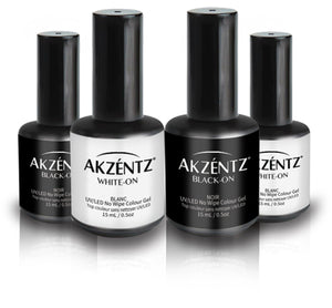 BLACK-ON - NO WIPE COLOUR GEL Non-sticky (no wipe) colour with a superior shine perfect for chrome! It is easy to apply and easy to soak off. Like all Akzentz gels , it is a 100% pure gel, solvent-free and made from premium European and North American ingredients. Each bottle contains 15 ml/0.5 oz.