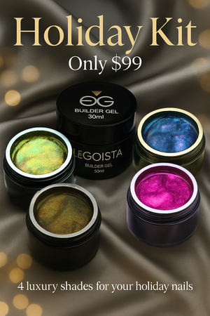 Discover the limited edition of Egoista builder gels, specially designed to bring a glamorous shine to your nail art creations. Ideal for nail technicians looking for shimmering, long-lasting shades, this collection includes four vibrant and elegant colors. Order now and let your clients shine!