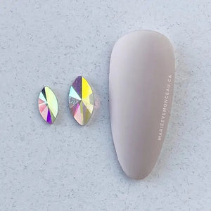 Marie-Ève Mongeau method application: Apply a little medium resin to the nail on the targeted area. Using a wax tip, take the jewel and place it on the resin. Do not catalyze, the resin dries slowly enough to allow you to place the jewel, and fast enough not to have to catalyze.
