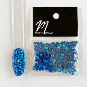 Application Marie-Ève ​​Mongeau method: Apply a little resin medium to the nail on the targeted area. Using a wax tip, take the jewel and place it on the resin. Do not catalyze, the resin dries slowly enough to allow you to place the jewel, and fast enough not to have to catalyze.