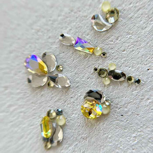 Application Marie-Ève Mongeau method: Apply a little resin medium to the nail on the targeted area. Using a wax tip, take the jewel and place it on the resin. Do not catalyze, the resin dries slowly enough to allow you to place the jewel, and fast enough not to have to catalyze.