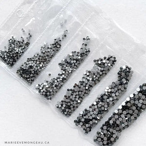 Application Marie-Ève Mongeau method: Apply a little resin medium to the nail on the targeted area. Using a wax tip, take the jewel and place it on the resin. Do not catalyze, the resin dries slowly enough to allow you to place the jewel, and fast enough not to have to catalyze.