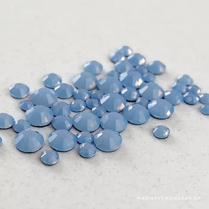 Application Marie-Ève Mongeau method: Apply a little resin medium to the nail on the targeted area. Using a wax tip, take the jewel and place it on the resin. Do not catalyze, the resin dries slowly enough to allow you to place the jewel, and fast enough not to have to catalyze.