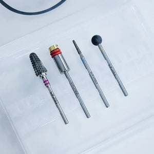 Remove the majority of gel polish with the new T-Rex tip, which has a rounded tip for safe rebalancing near the proximal fold. Use the adjustable mandrel with Zebra sanding strips (not included) to remove remaining color or peeling and to prep the nail. Then use the Micro Taper Diamond Bit for a beautiful detailed dry manicure. Finally, the last step of your service will be the Polisher tip!
