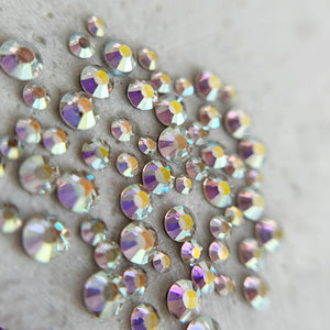 Un diamant à dos plat d’une couleur pêche tendre avec un fini AB pour un ajout de reflets pétillants.
