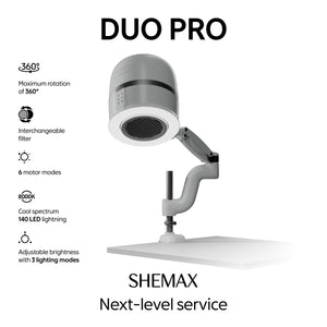 Le DUO PRO est un collecteur de poussière de nouvelle génération, conçu pour offrir une aspiration puissante et silencieuse tout en s’adaptant aux besoins des hygiénistes en soins de pieds et des techniciennes qui ne peuvent pas percer leur table. Contrairement aux systèmes fixes, il s’installe par le haut avec un bras ajustable, offrant ainsi une flexibilité maximale sans compromettre la performance.
