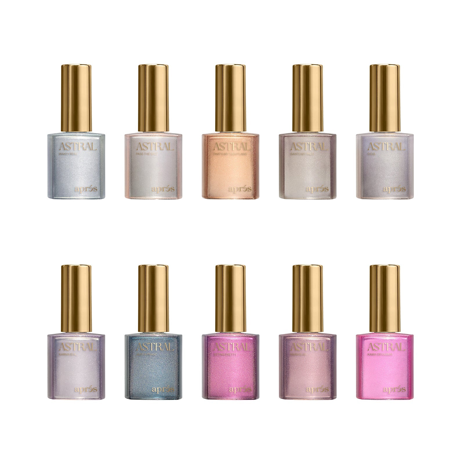 Astral Gel Couleur : Découvrez la collection de 40 nuances réparties en 4 finis lumineux et envoûtants :