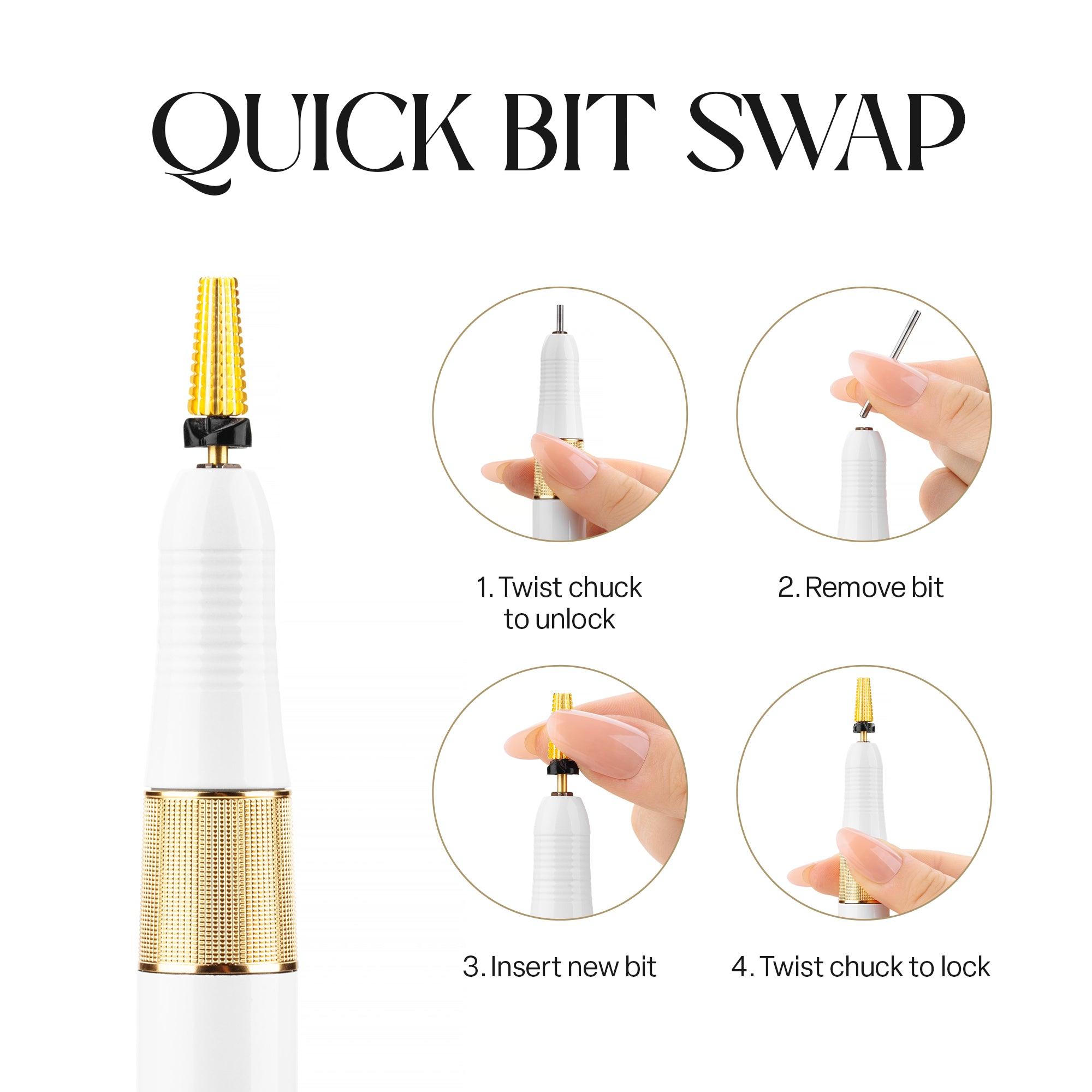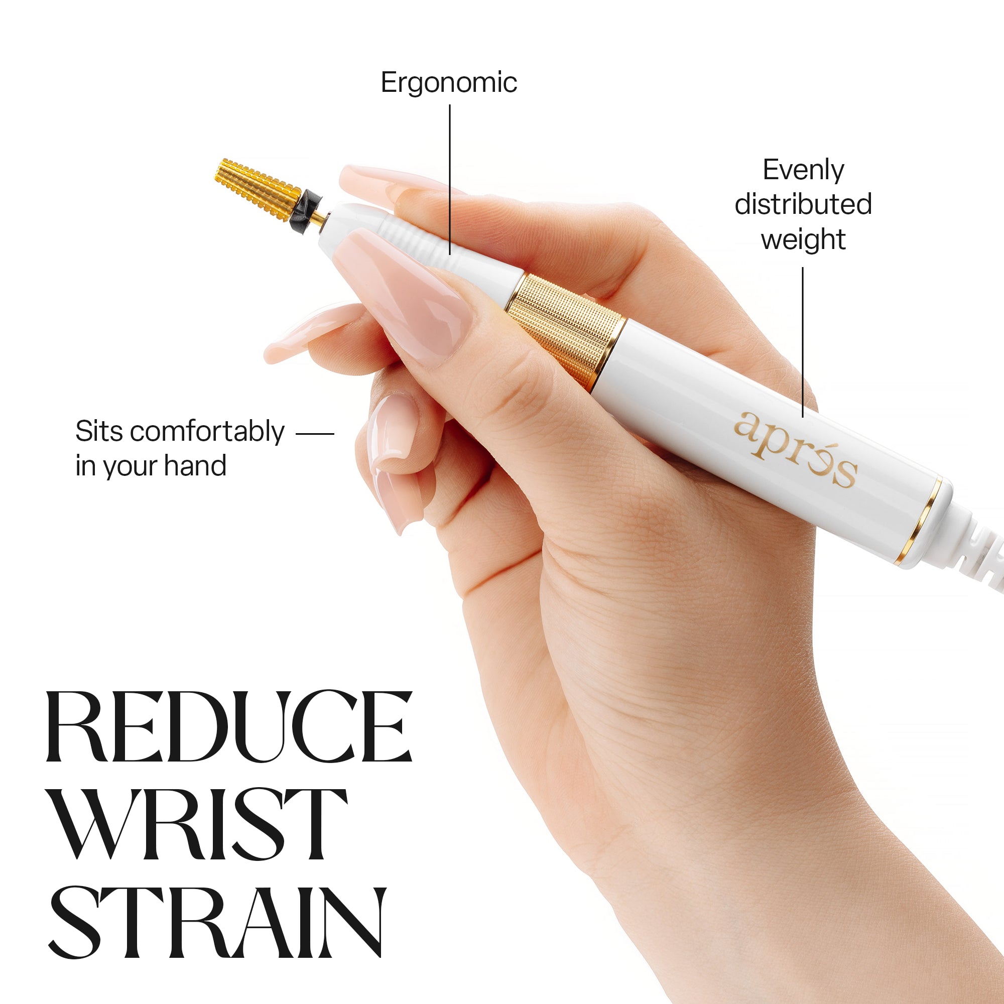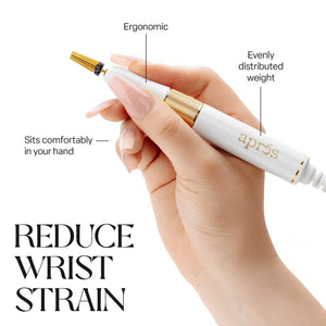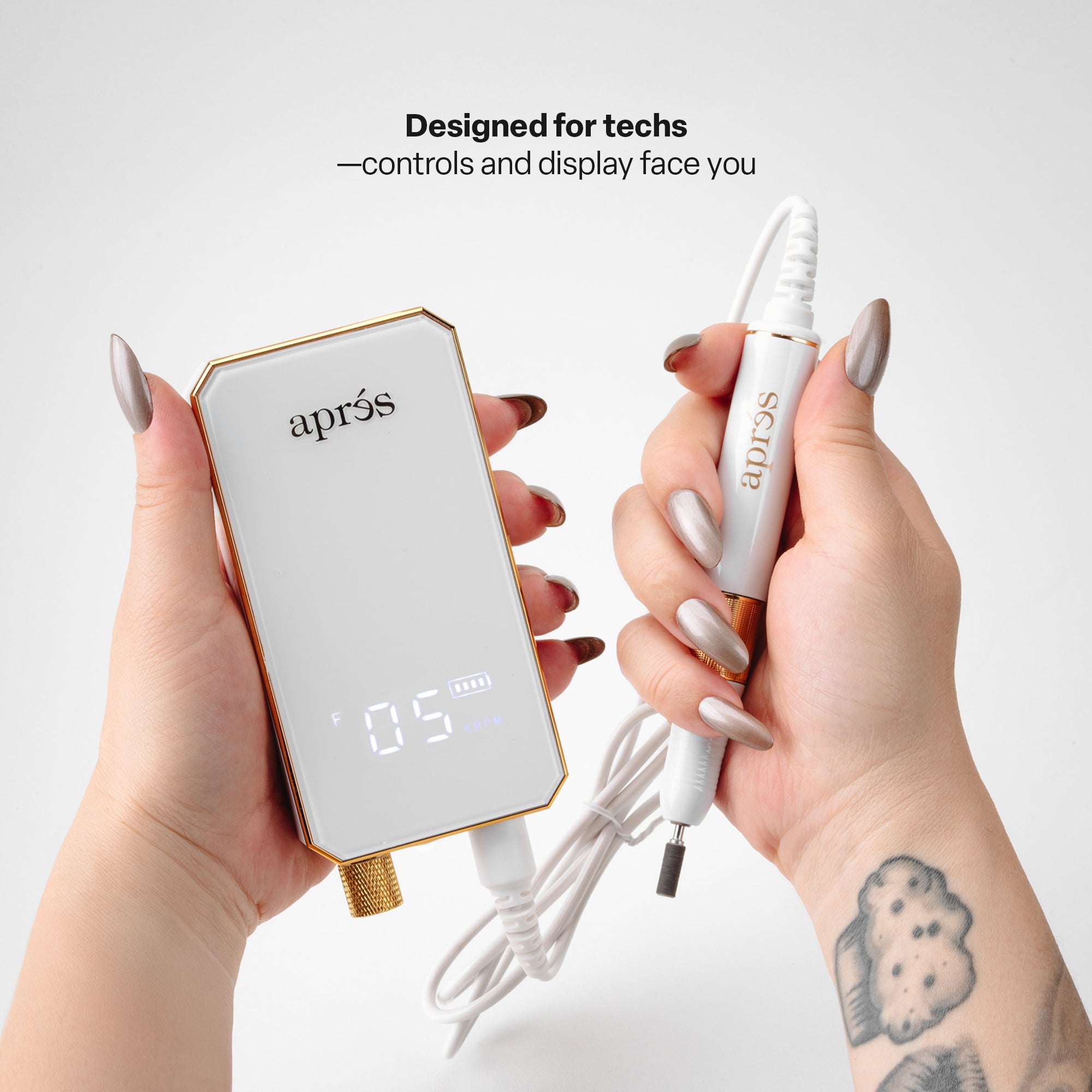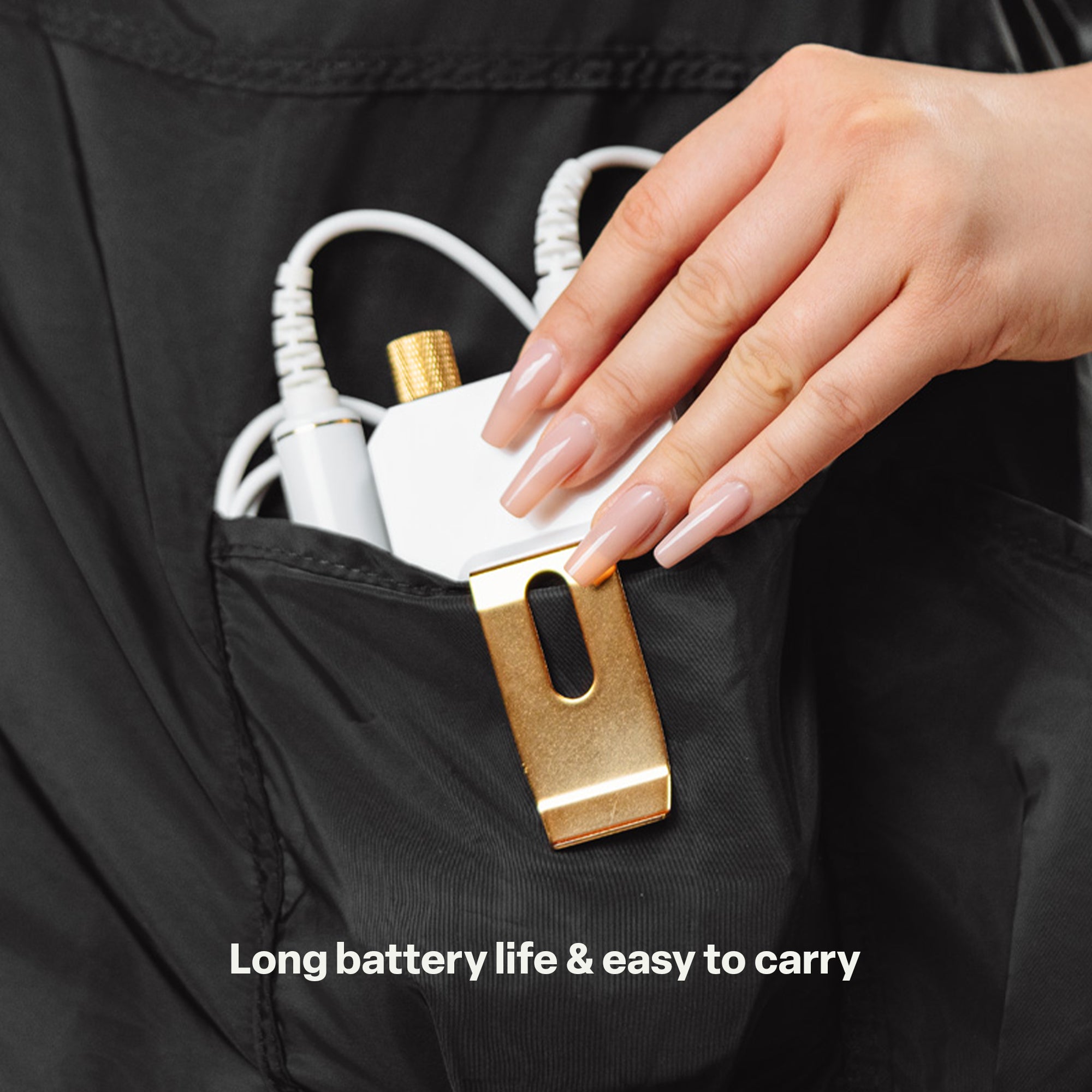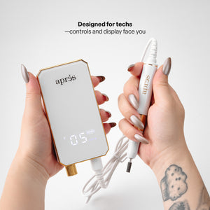La Lime électrique dispose d’une batterie rechargeable longue durée et d’un stylet équilibré et léger, conçu pour réduire la fatigue lors de longues journées au salon – ou où que vous soyez !