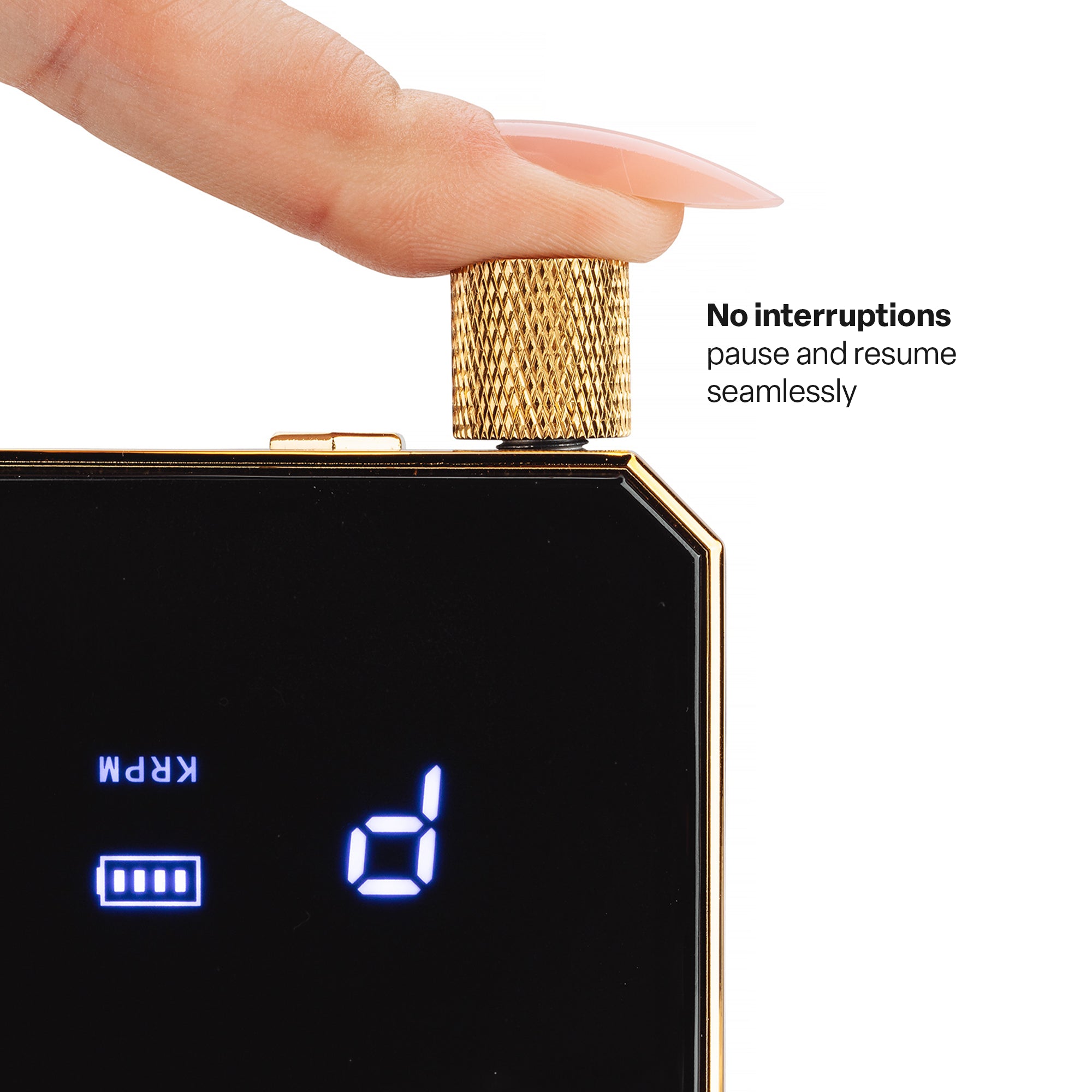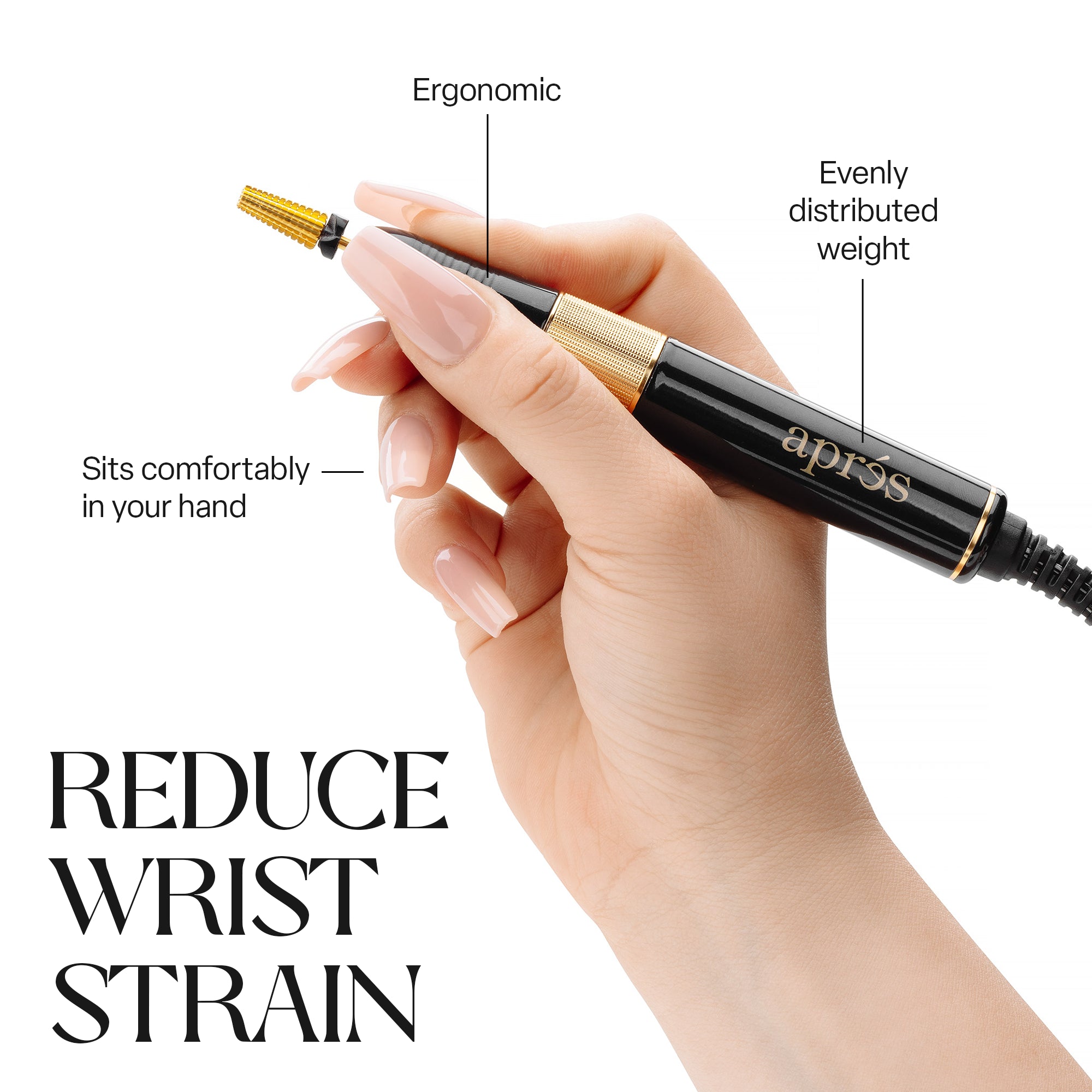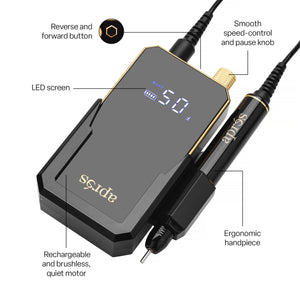 La Lime électrique dispose d’une batterie rechargeable longue durée et d’un stylet équilibré et léger, conçu pour réduire la fatigue lors de longues journées au salon – ou où que vous soyez !