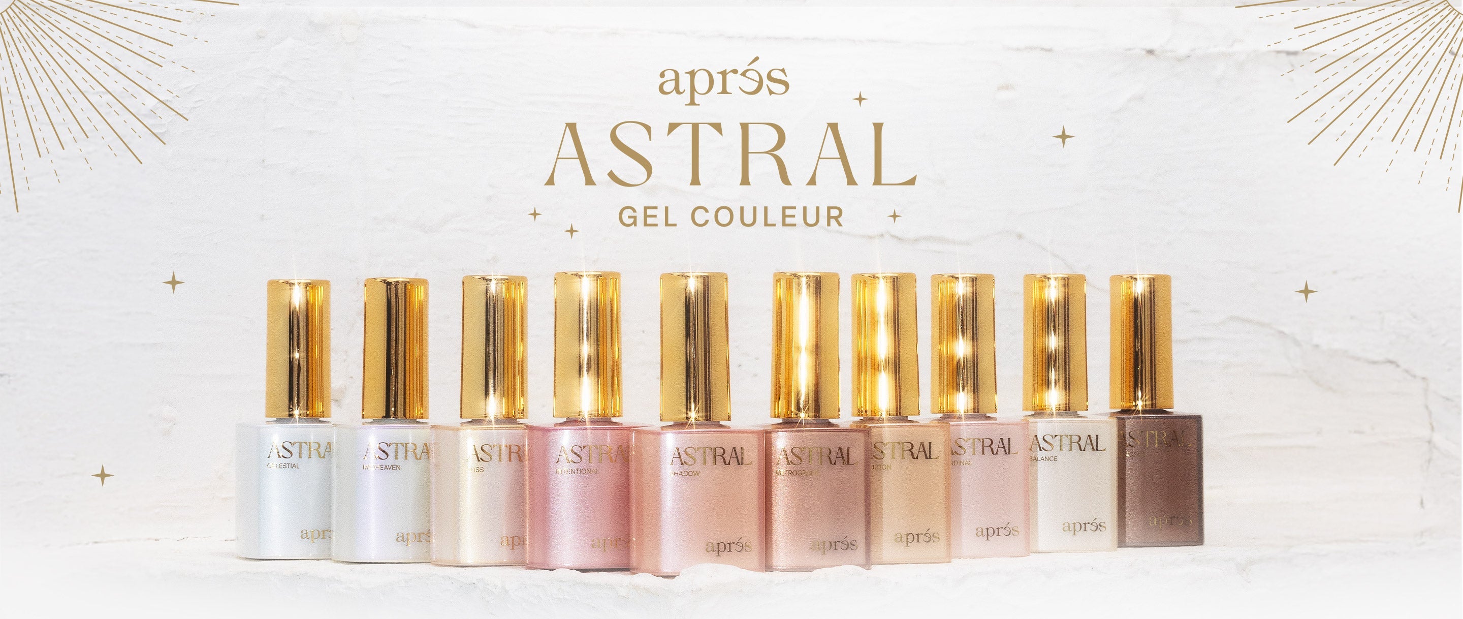 Astral Gel Couleur : Découvrez la collection de 40 nuances réparties en 4 finis lumineux et envoûtants :