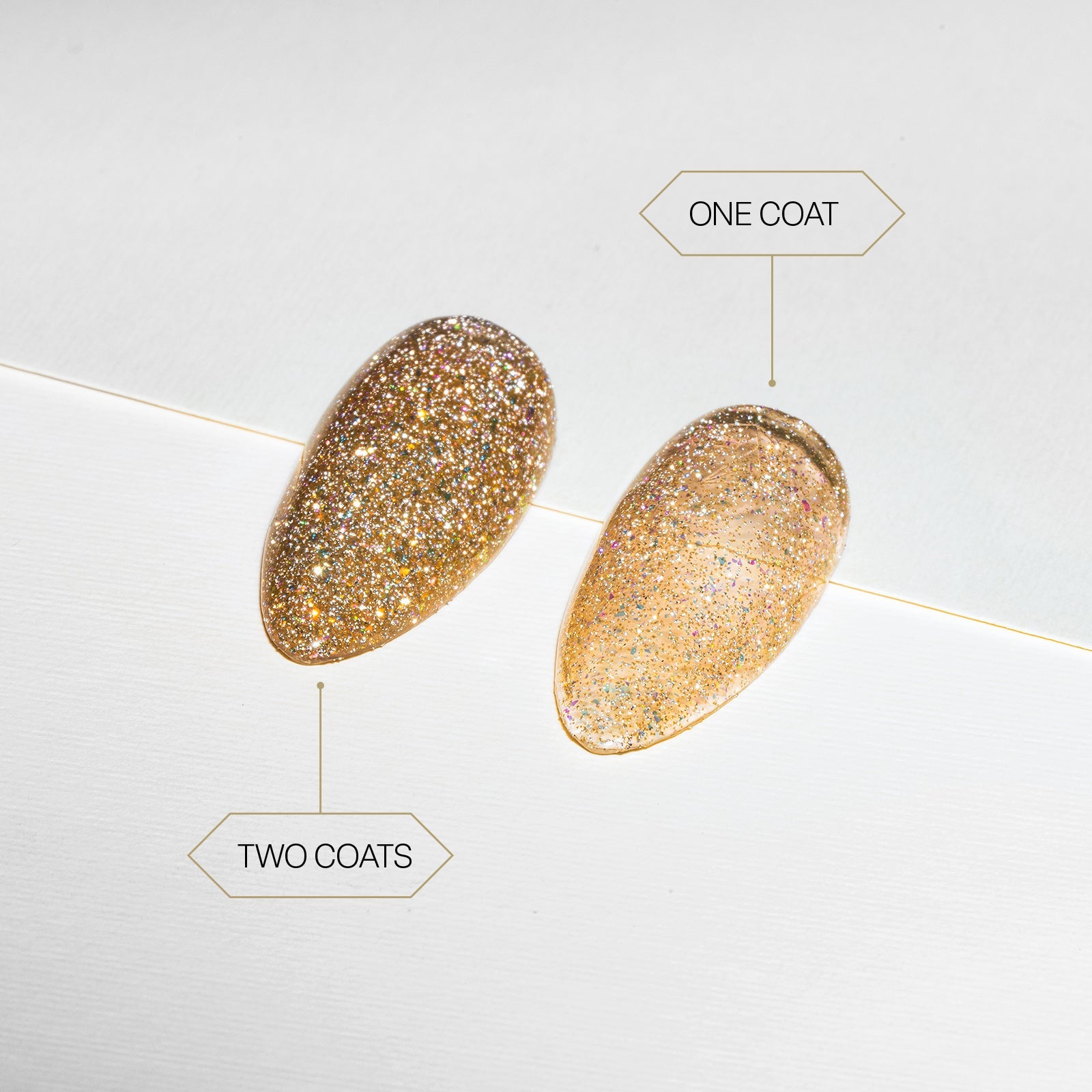 Des paillettes ultra-brillantes suspendues dans une base gel pour un fini soyeux qui brille intensément sous les lumières ou en photo avec flash. Couleurs allant de l’argenté multicolore au rose vif.