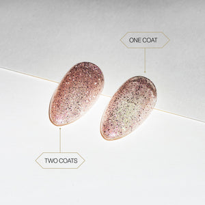 Des reflets dorés, roses et violets scintillants avec des particules métalliques aimantées. Effet Cat Eye magnétique et étincelant garanti. Aimant inclus.