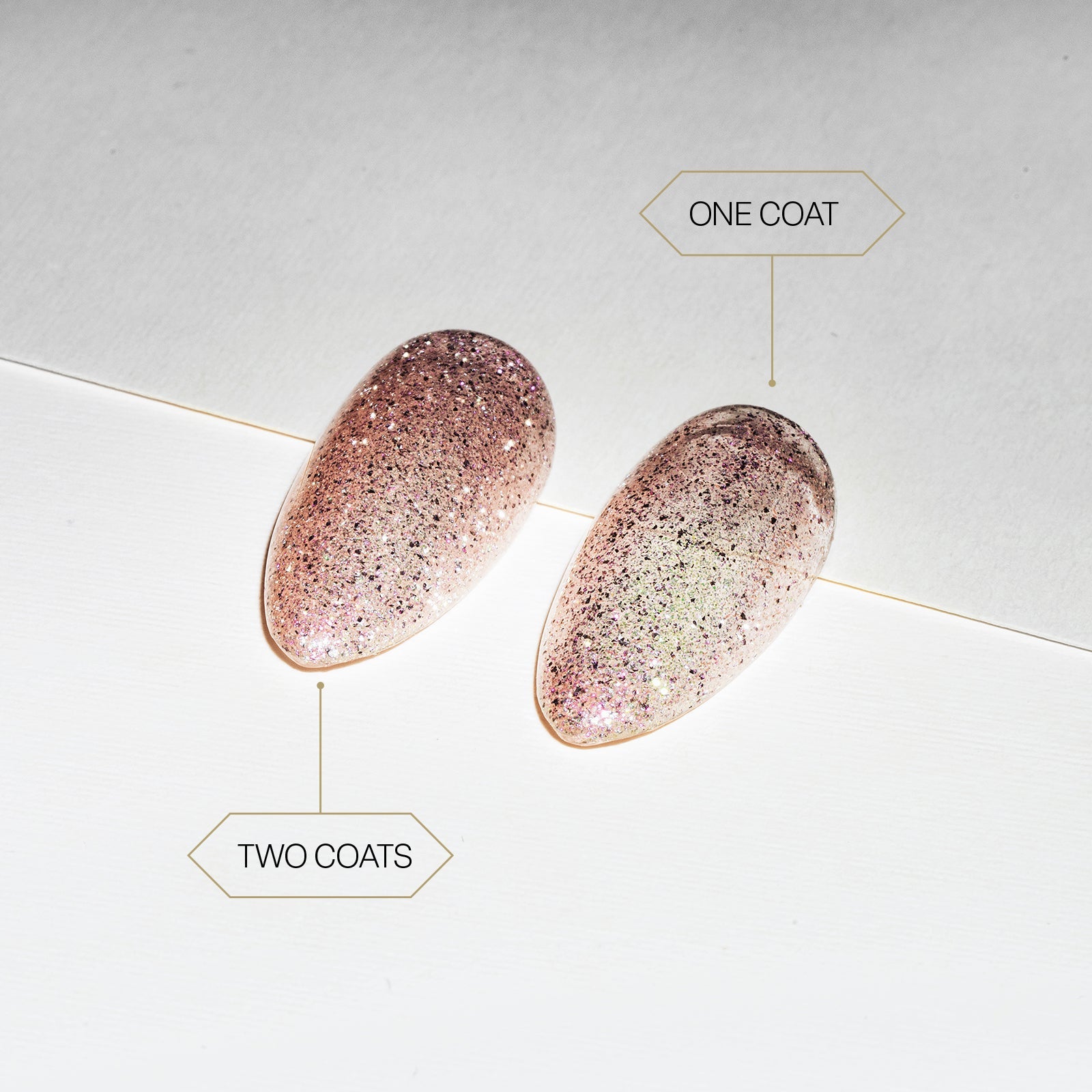 Des paillettes ultra-brillantes suspendues dans une base gel pour un fini soyeux qui brille intensément sous les lumières ou en photo avec flash. Couleurs allant de l’argenté multicolore au rose vif.