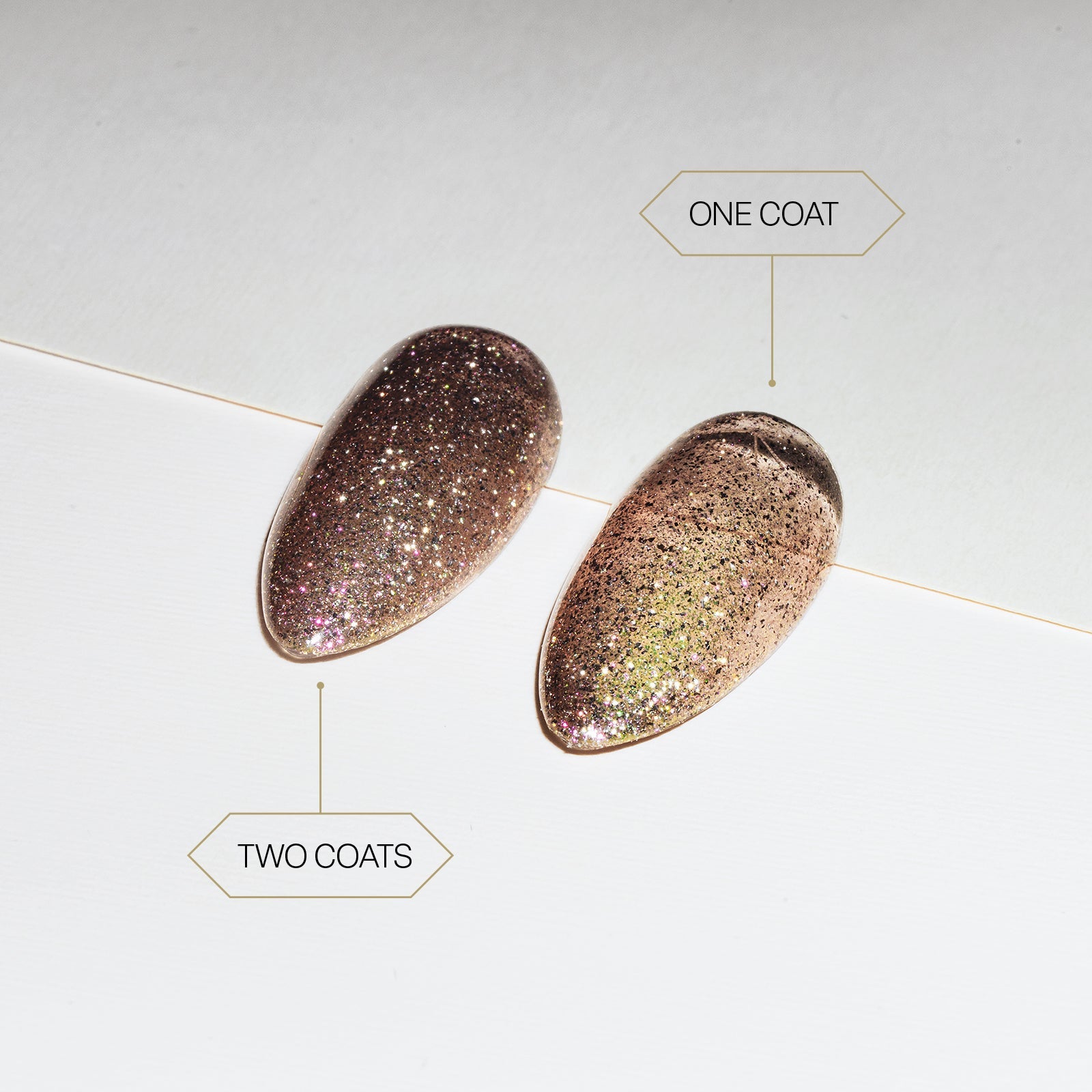 Des paillettes ultra-brillantes suspendues dans une base gel pour un fini soyeux qui brille intensément sous les lumières ou en photo avec flash. Couleurs allant de l’argenté multicolore au rose vif.